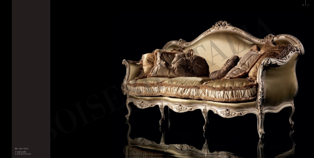 Entdecken Sie das elegante 3-Sitzer Sofa Senator für Ihr Wohnzimmer! Hergestellt aus hochwertigem Holz und handgefertigt in Italien vom renommierten Hersteller Boiserie Italia, bietet dieses Sofa nicht nur erstklassigen Komfort, sondern auch zeitlose Eleganz. Mit Maßen von ca. 230 x 75 x 125 cm passt es perfekt in Ihr Zuhause. Die Farbe entspricht der Abbildung und verleiht Ihrem Wohnraum eine stilvolle Note. Gönnen Sie sich Luxus mit diesem exquisiten Möbelstück! Erweitern Sie Ihre Wohnzimmereinrichtung mit einem echten Blickfang!