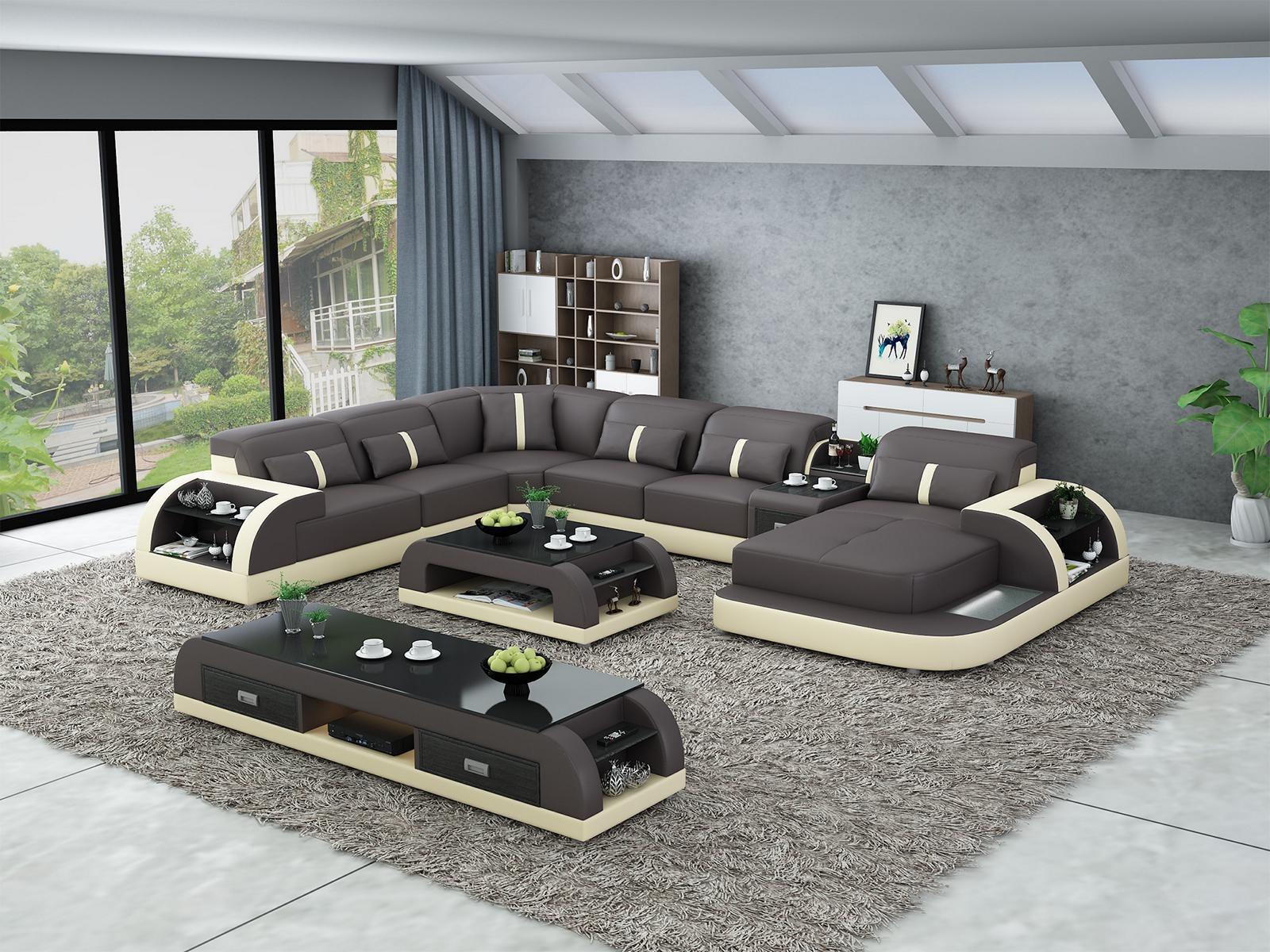 Garnitur Design Wohnlandschaft Ecksofa Sofa Couch U-Form Tisch Leder 2tlg. sets
