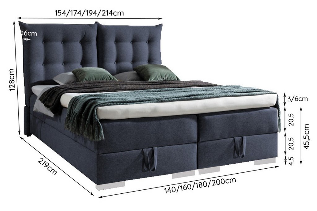 Maße 140x200, 160x200, 180x200 oder 200x200cm